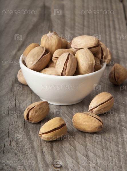 Обжаренные фисташки на фоне дерева