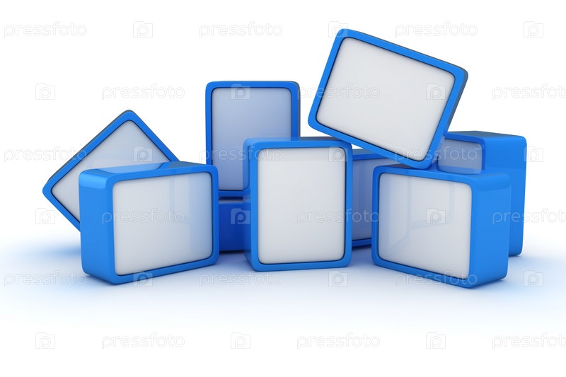 Куча синих и белых кубиков на белом фоне