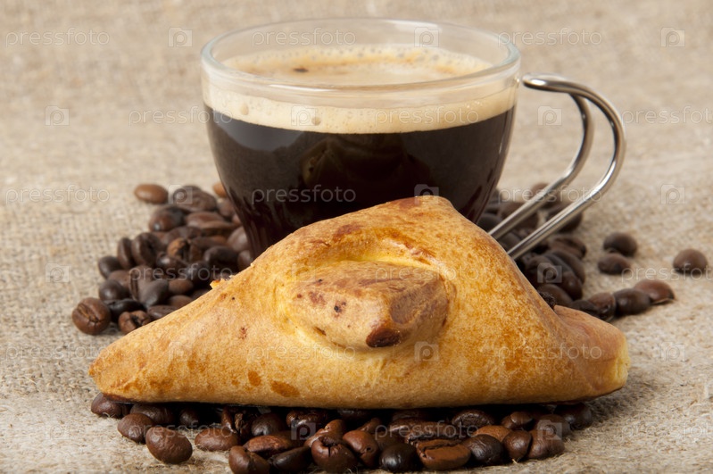 Чашечка кофе и пирожок с сыром
