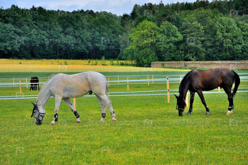 Две лошади на лугу возле замка Фазанари, Германия, Гессен