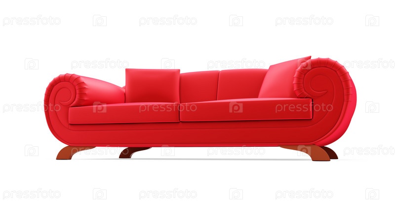 Красный диван на белом фоне