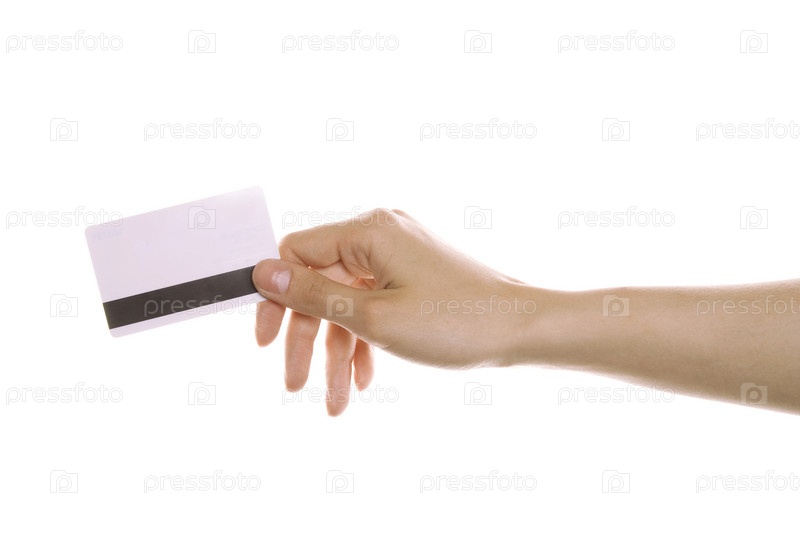 Пластиковая карточка в руке. Изолировано на белом фоне