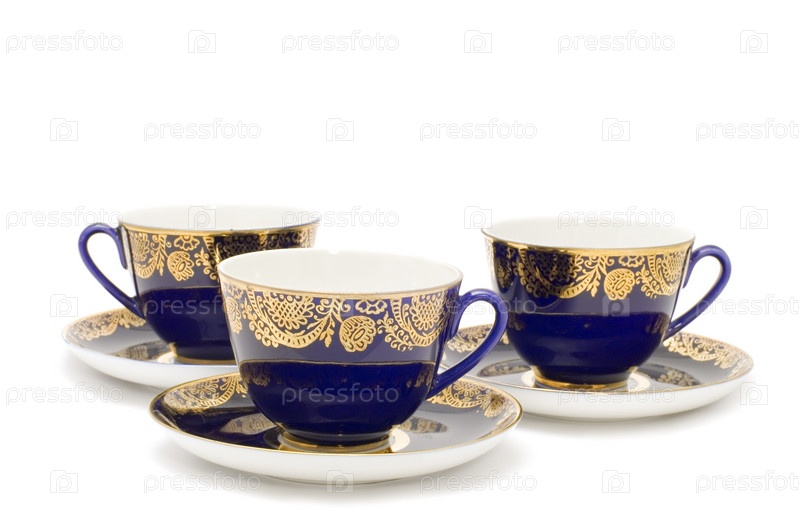 Объект серии на белых голубых чайных чашках