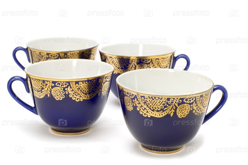 Объект серии на белых голубых чайных чашках