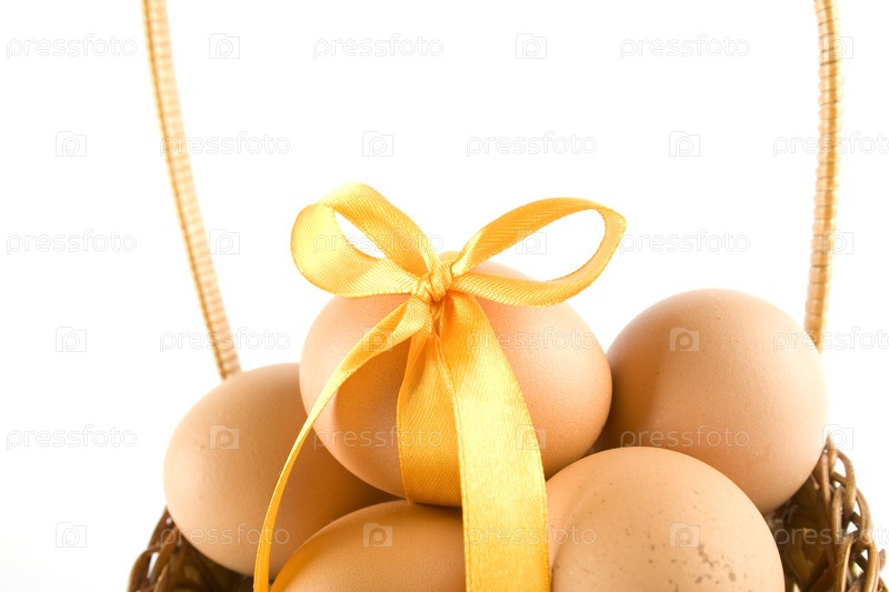 Яйца с лентой в корзине