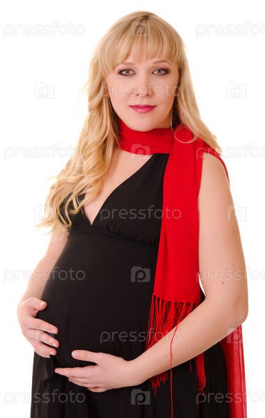 Портрет беременной женщины на белом фоне