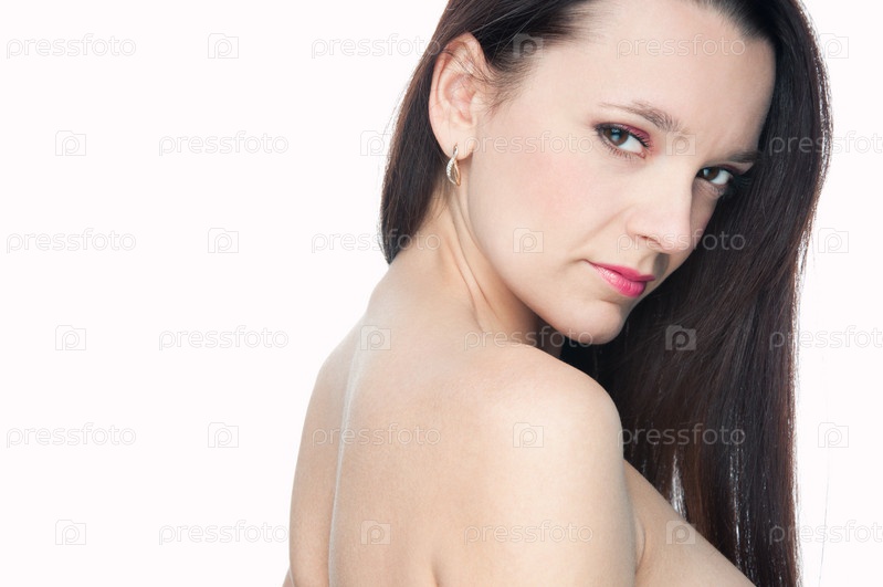 Красивая молодая женщина с длинными каштановыми волосами