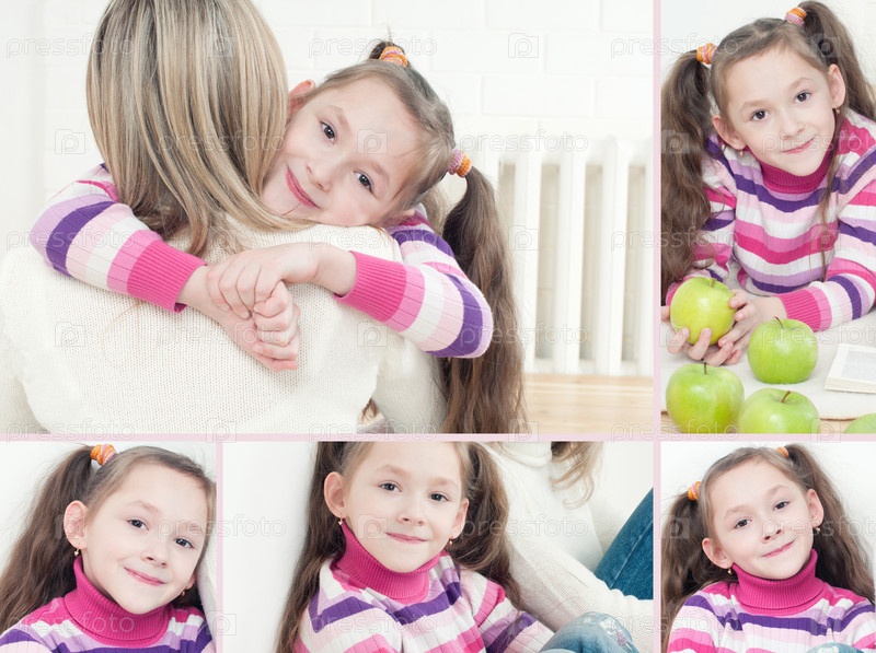 Маленькая девочка с мамой, коллаж
