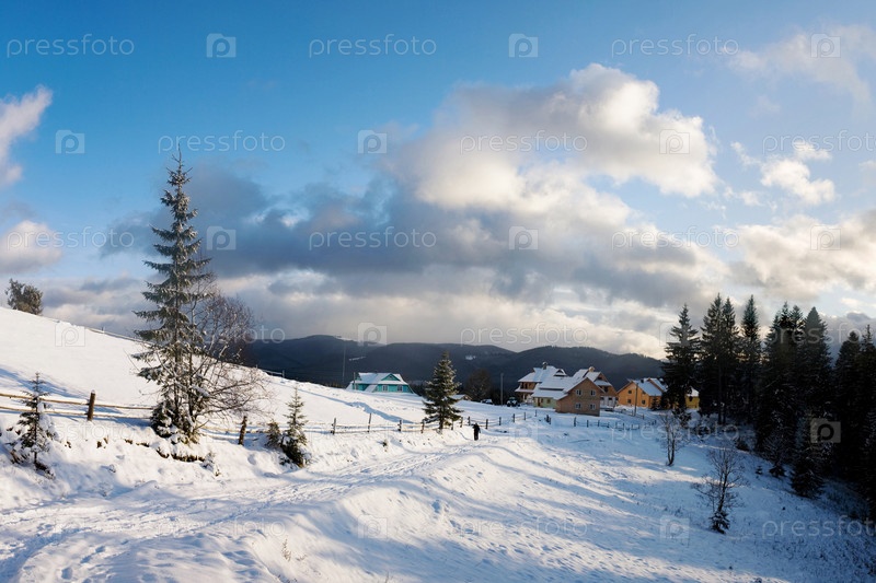 Маленькая деревушка в зимнем лесу