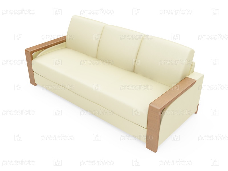 Изолированный бежевый диван на белом фоне