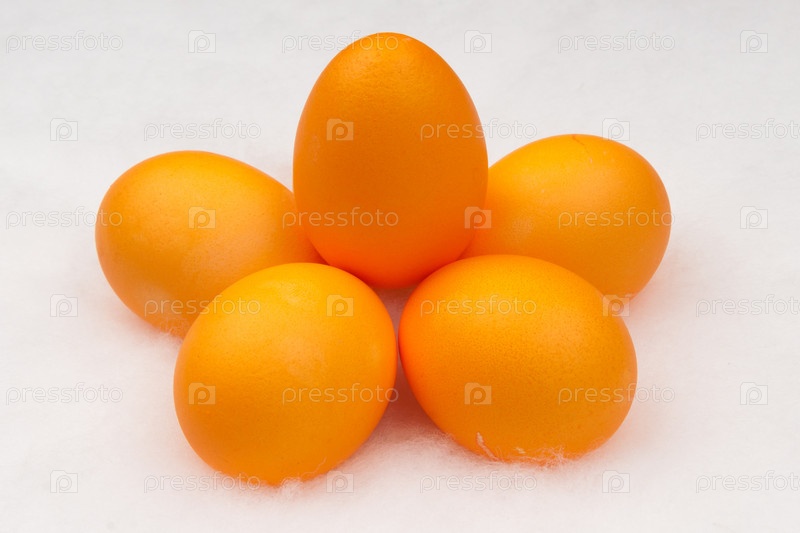 Оранжевые яйца в белом гнезде