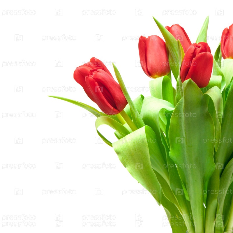 Красные тюльпаны на белом фоне