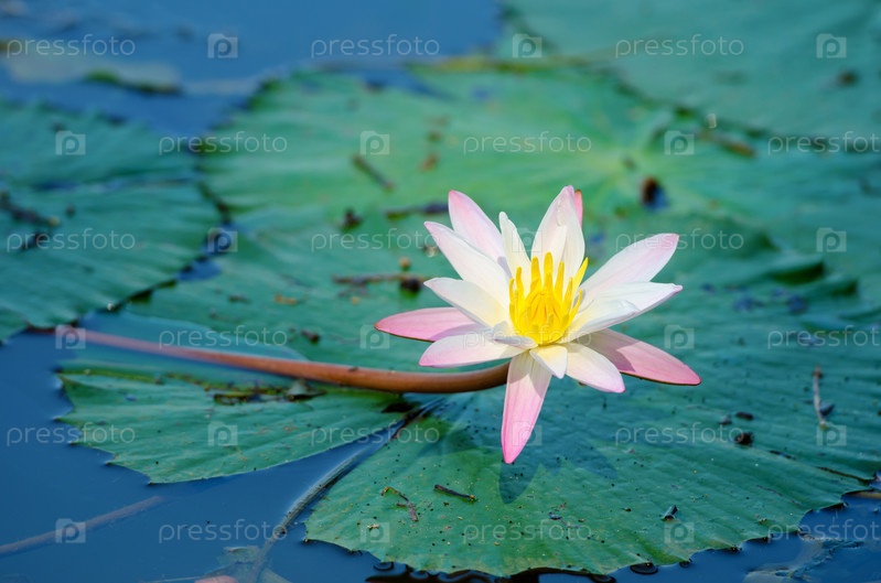 Цветущий цветок с зелеными листьями на поверхности воды