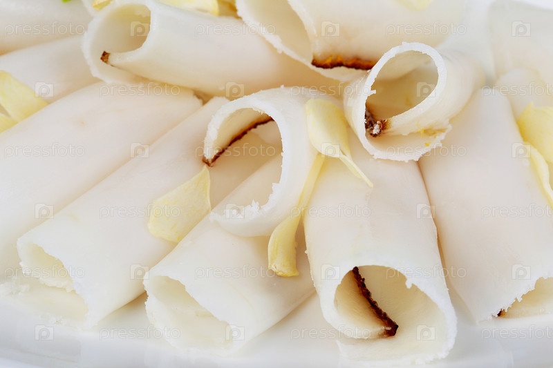 Соленое свиное сало с чесноком, разрезанное на куски