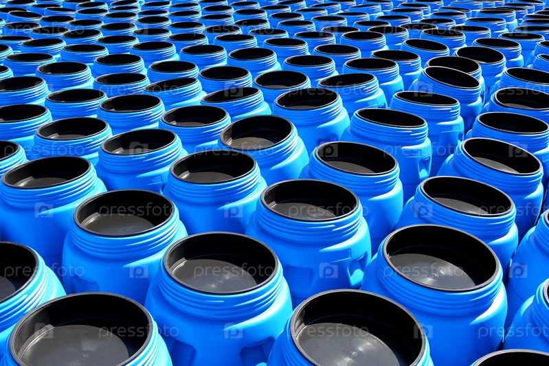 пластиковые голубые бочки