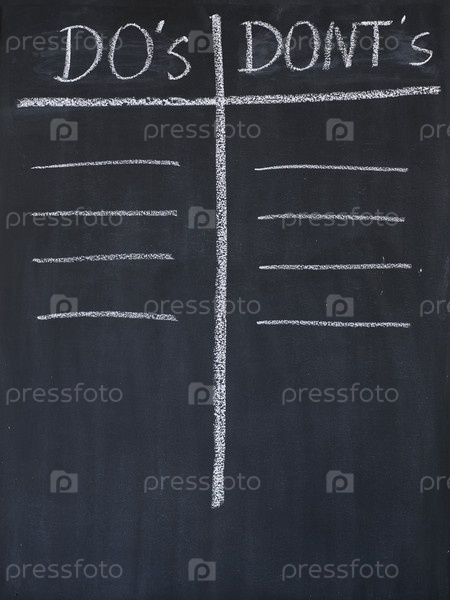 Список вещей. которые нужно и не нужно делать, написанный мелом на доске