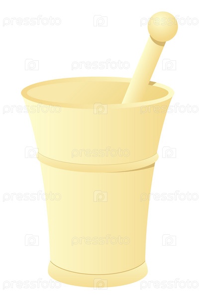 Пестик и ступка, изолированные на белом фоне. Векторная иллюстрация