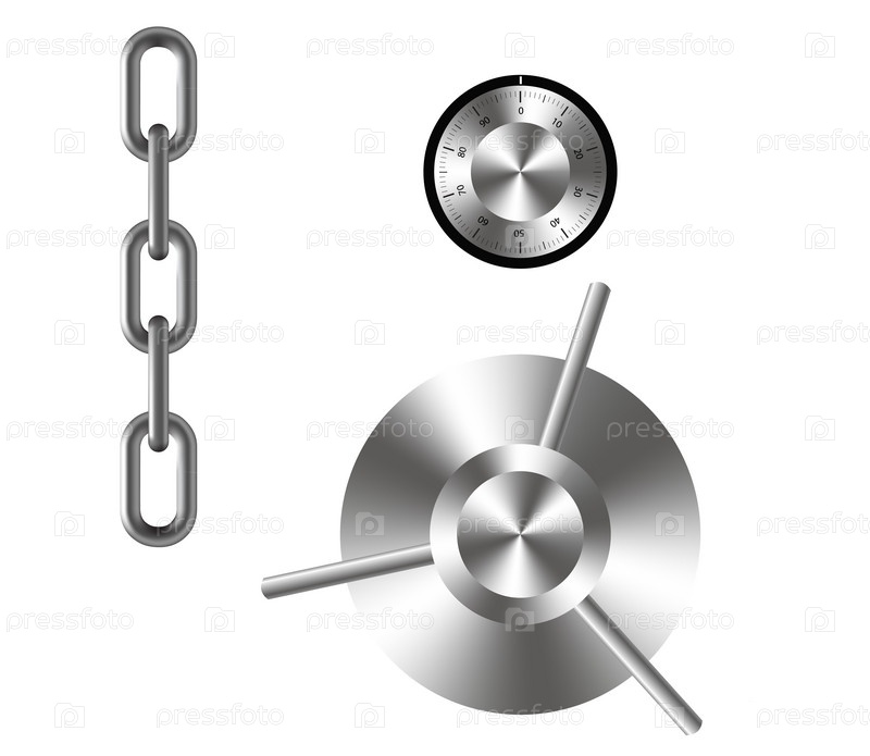 Элементы сейфа, изолированные на белом фоне. Векторная иллюстрация