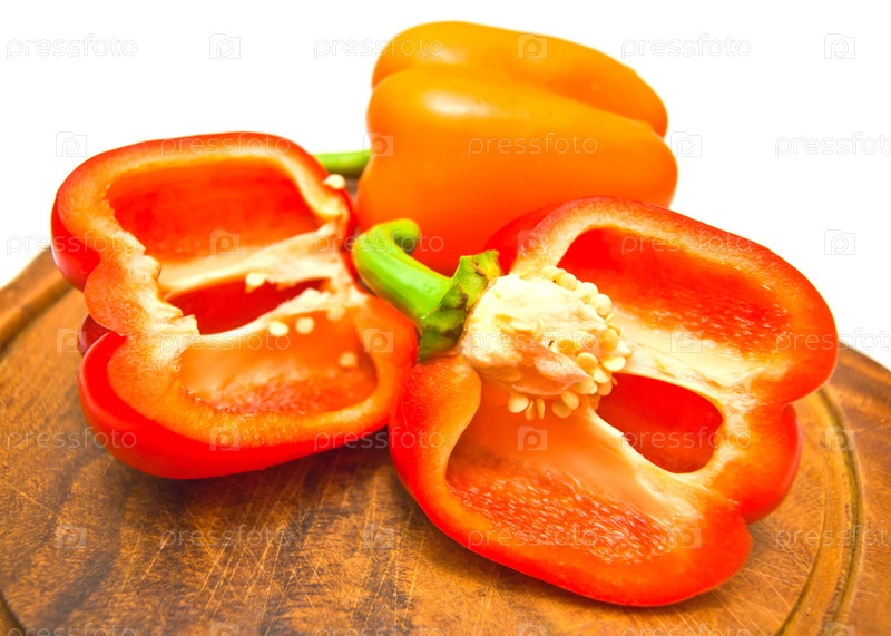 Свежий перец на доске на белом фоне
