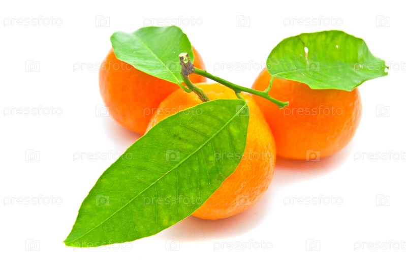 Три мандарина на белом фоне