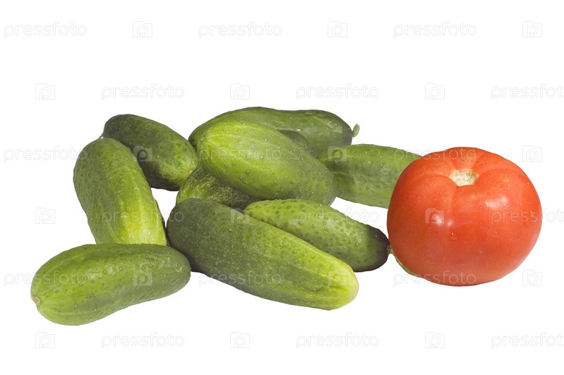 Помидор и огурцы на белом фоне