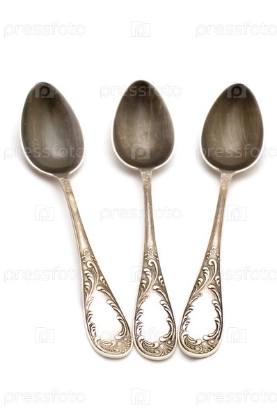 Объект серии на белом - кухонная утварь - серебряная ложка