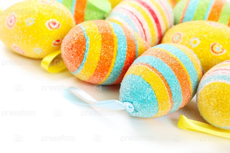 Разноцветные пасхальные яйца, изолированные на белом фоне