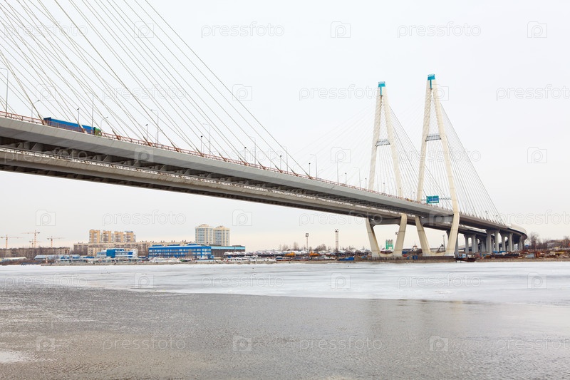 Обуховский мост через реку Неву в Санкт-Петербурге, Россия