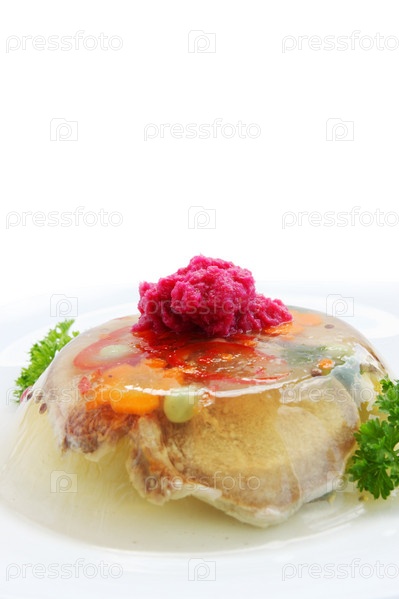 Заливное из говяжьего языка с хреном и овощами
