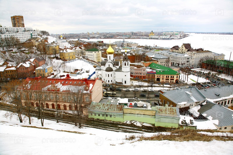 Панорамный вид Нижнего Новгорода в марте, Россия