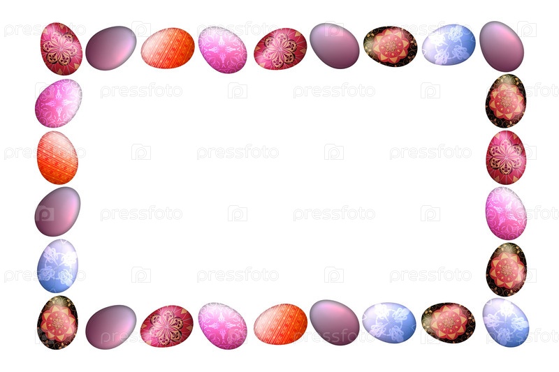 Рамка из красочных пасхальных яиц на белом фоне