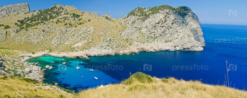 Романтический вид на залив Форментор на Майорке, Испания. Панорама