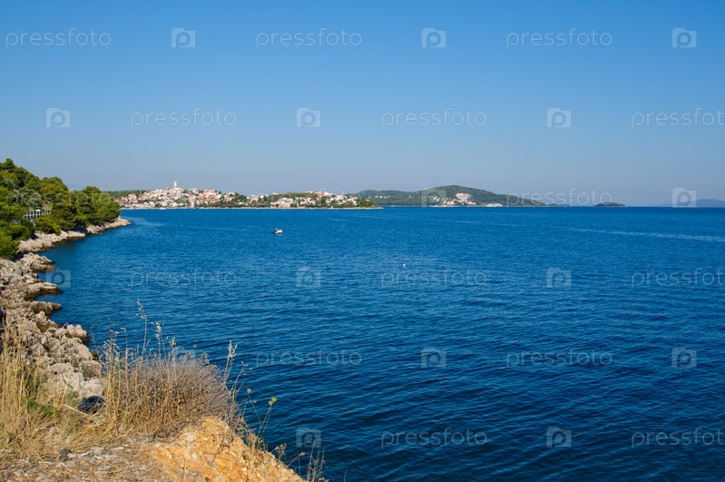 Панорамный вид Далматинского побережья с городом Ровинь в Хорватии