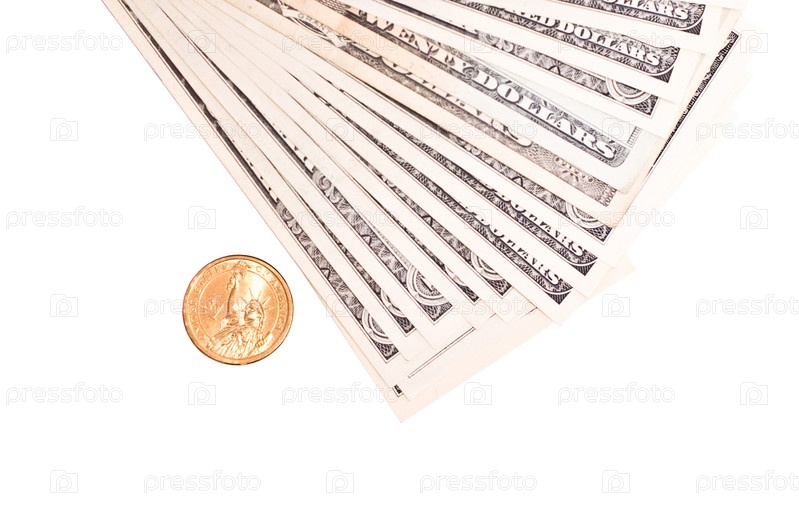Доллары и цент на белом фоне
