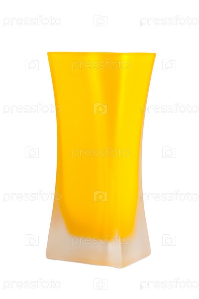 Желтая ваза для цветов на белом фоне