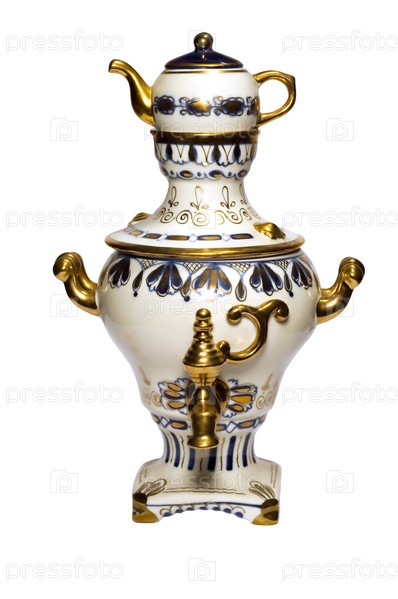 Сериал: изолированный на белом:сервис чая - самовар