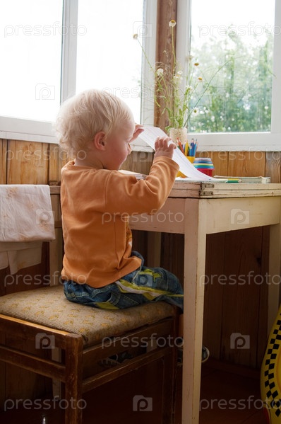 Ребенок рисует за столом
