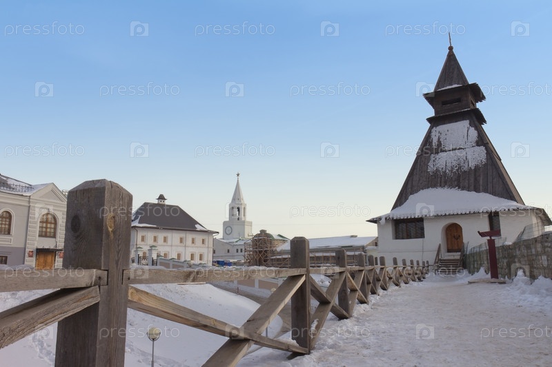 Фрагмент стены Кремля и Спасской башни в Казани, Татарстан