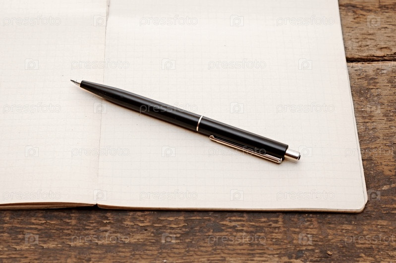 Блокнот с ручкой на деревянном столе