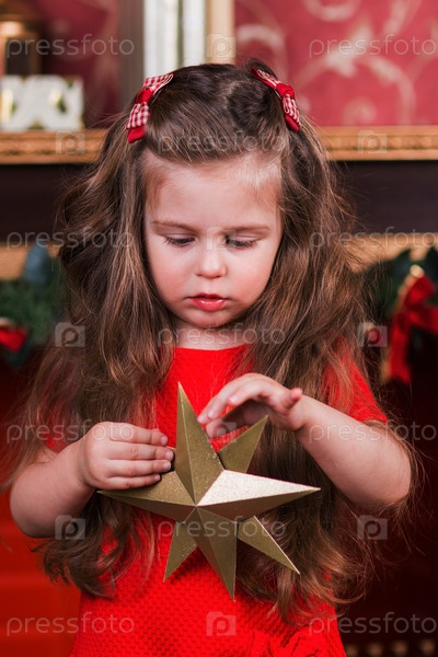 Маленькая девочка делает рождественские украшения
