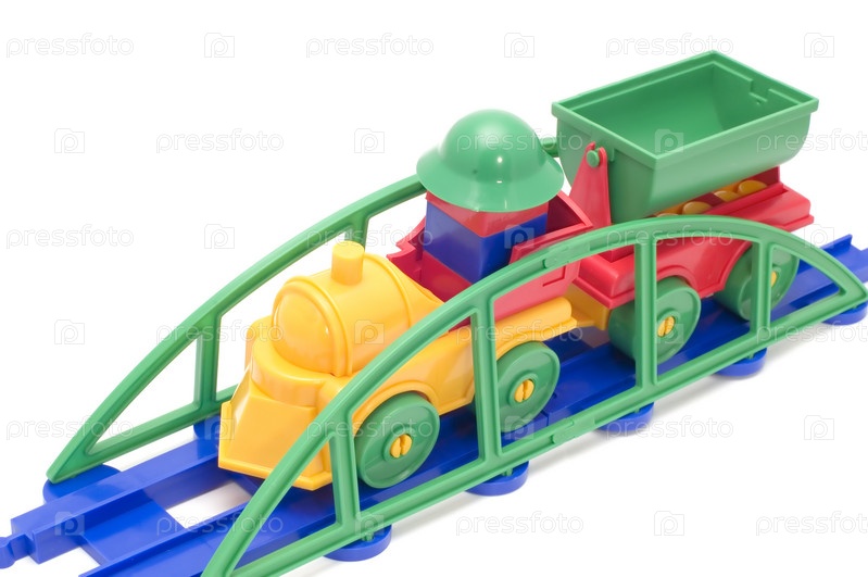 Серийный объект на белой игрушке - железнодорожный двигатель и ветви