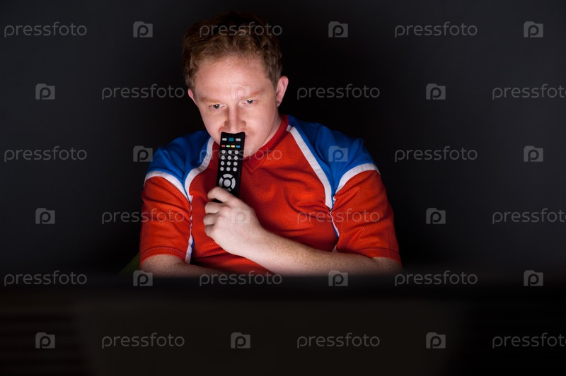Болельщик смотрит телевизионную трансляцию матча своей любимой команды
