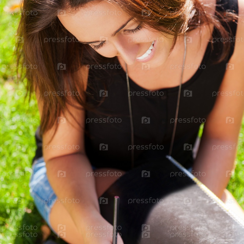 Студентка на зеленой лужайке