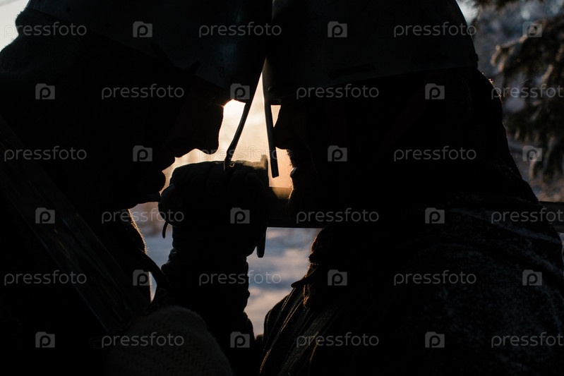 Силуэты двух средневековых воинов