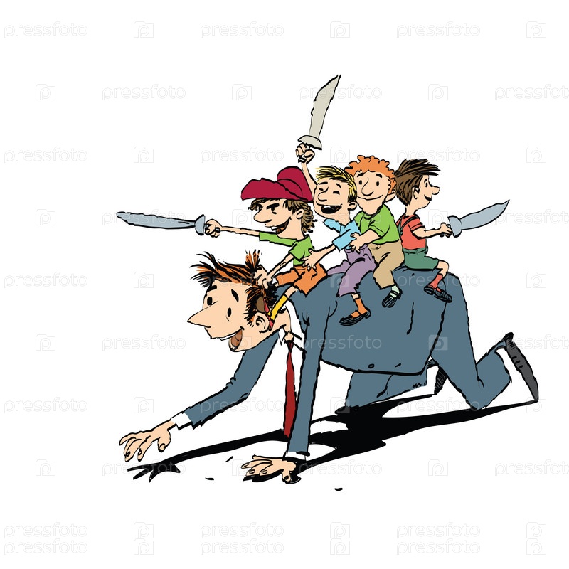 Папа играет с детьми в рыцарей