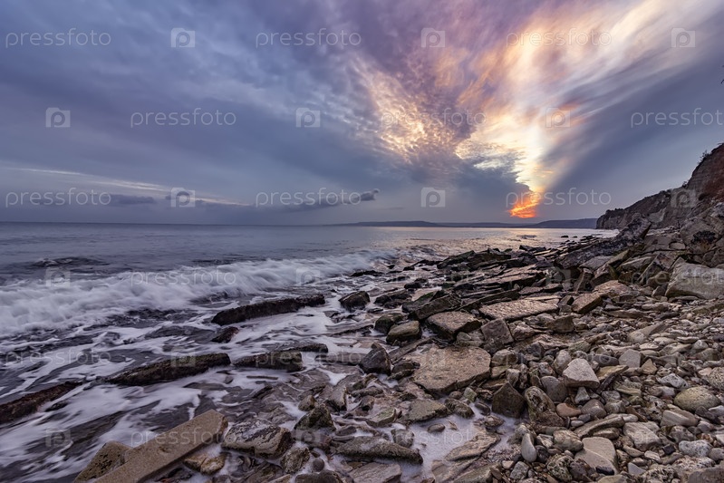 Захватывающий осенний закат на море