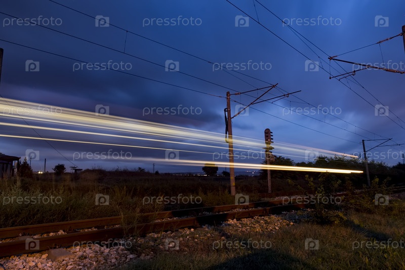 Проходящий ночной поезд