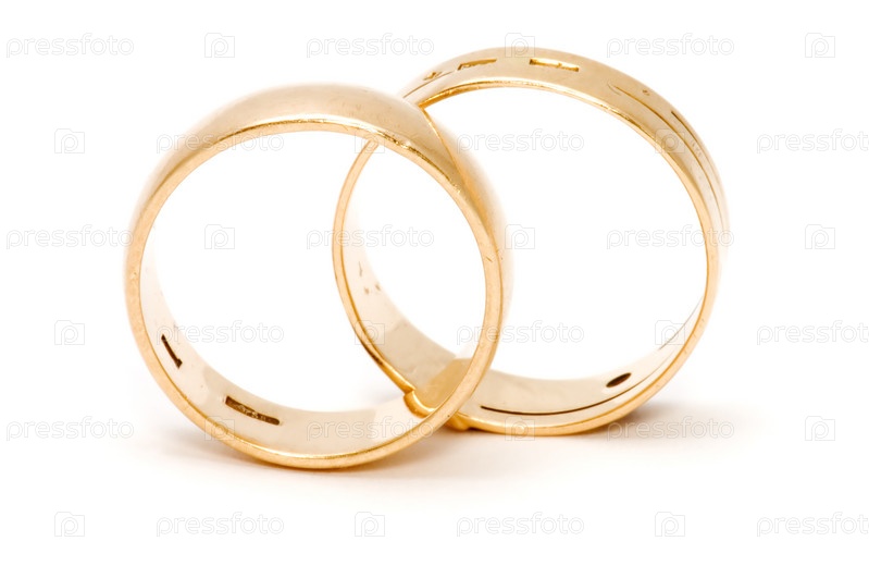 Обручальные кольца на белом фоне