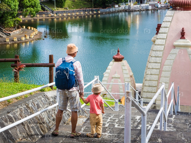 Отец и ребенок в Ганга Талао. Маврикий