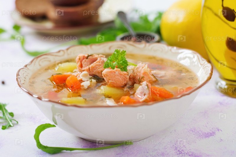 Лососевый суп с овощами